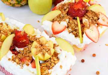 Puedes agregar miel, granola, yogurt o chantilly.
